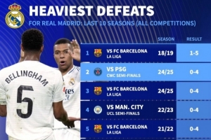 体育资讯7月10日讯 巴黎在世俱杯半决赛4-0血洗皇马,转会市场也列出了皇马近10年来的惨败纪录,巴萨是银河战舰的最大苦主。